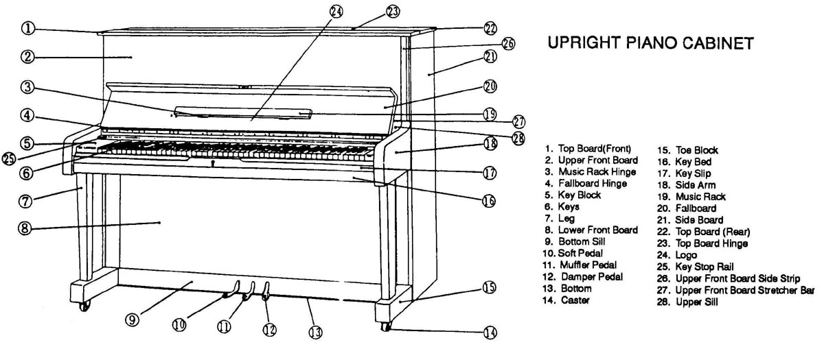 Here are some diagrams of external piano case parts so