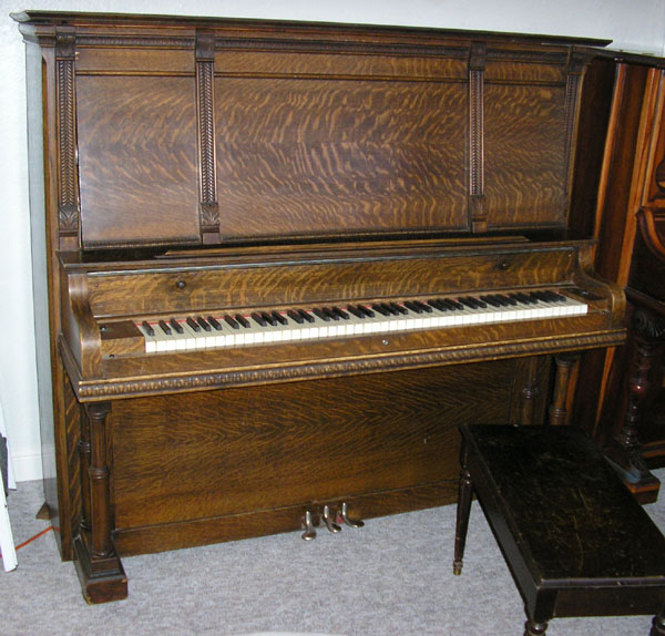 • Comments: This old upright has been given a new lease on life with a thorough action rehabilitation and has been tuned to a stable A440 pitch. A good deal for the price! Includes bench.