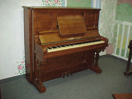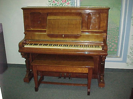 • Comments: A very unique piano with its just refinished Quartersawn Oak cabinet. A full, rich sounding tall upright. Includes bench.