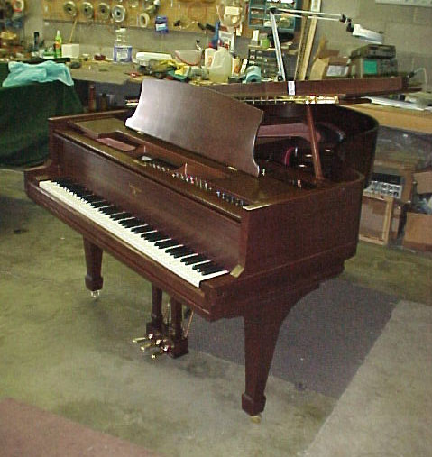 • Comments: This beautiful instrument has been refinished, and fully restored: restrung, soundboard repaired, new hammers/shanks/flanges. It will serve a serious player well. Includes matching bench.