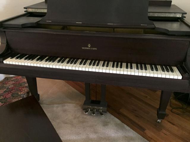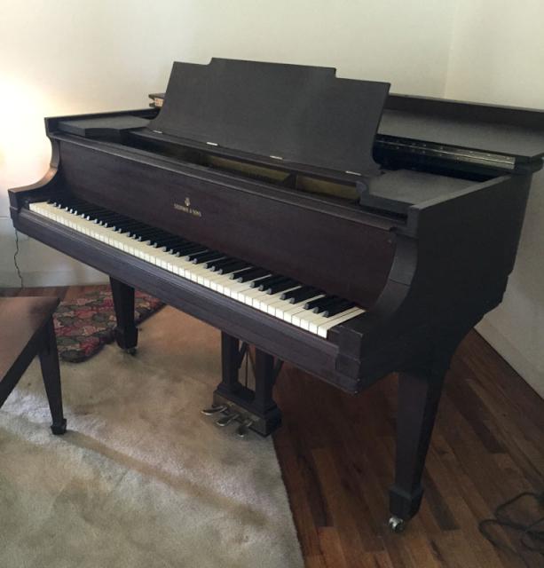 This older grand is in excellent original condition. The pinblock and strings are holding a stable tuning. The soundboard has no cracks and the bridges are good.