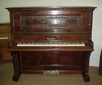 • Comments: This Victorian Beauty typifies the era with an ornate case, original ivories and 5 pedals. It is in great working condition & sounds big and rich. Includes bench.