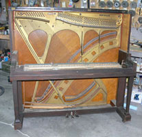 As in the above pictures, your piano probably fits into one of the descriptions, that's why we never say a piano is worth x Dollars. Condition is everything, inside and out. Just reading through our Online Appraisal will give you some idea of what determines a piano's value and what might make it worth more. One of the very few exceptions would be the piano we show on the front page which is extremely ornate and everything is hand carved. This type of case on an upright or a grand piano would raise it's value considerably, above all other conditions.