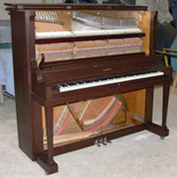 Preface to above: Same piano, rebuilt and refinished. Ernestly asked by a viewer: "Why is your piano worth more than mine"? (Your's hasn't been touched by a piano technician in 30 years).
